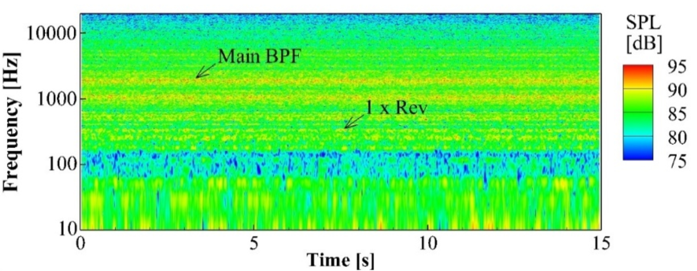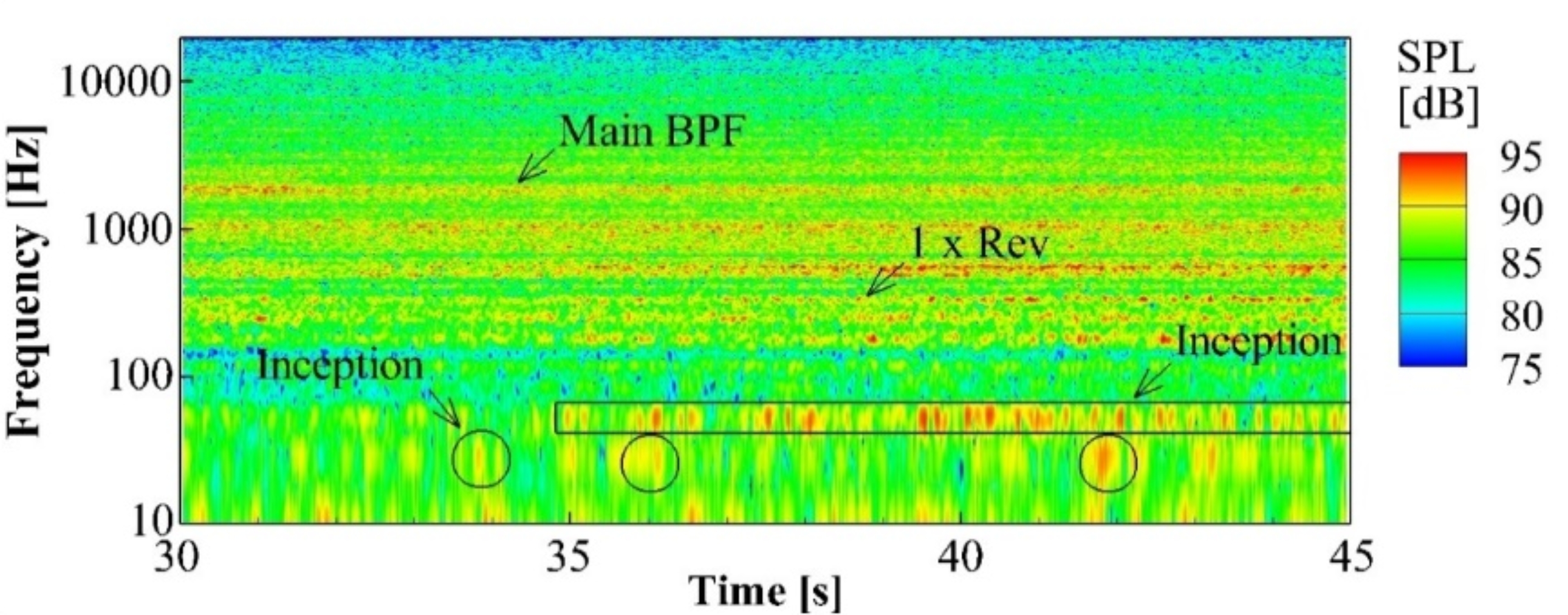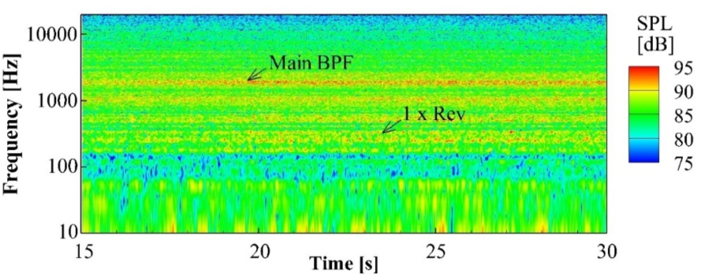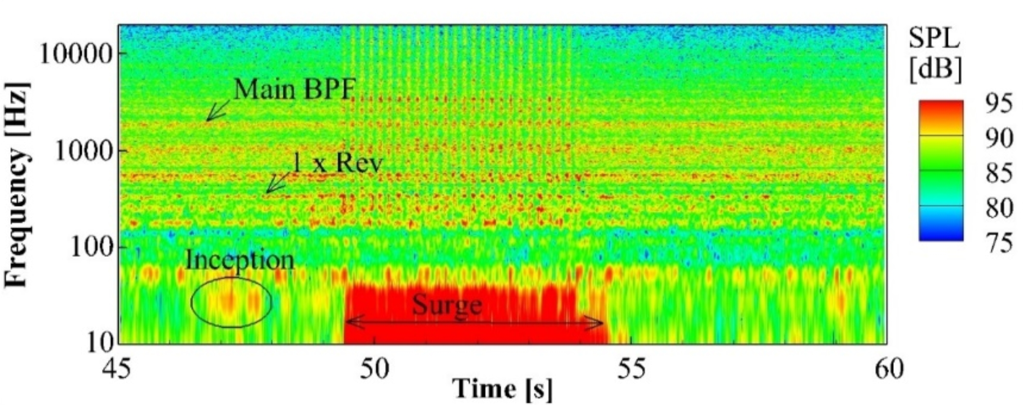图 Spectrograms of compressor inlet noise obtained by microphone at the rotational speed of 30 krpm.