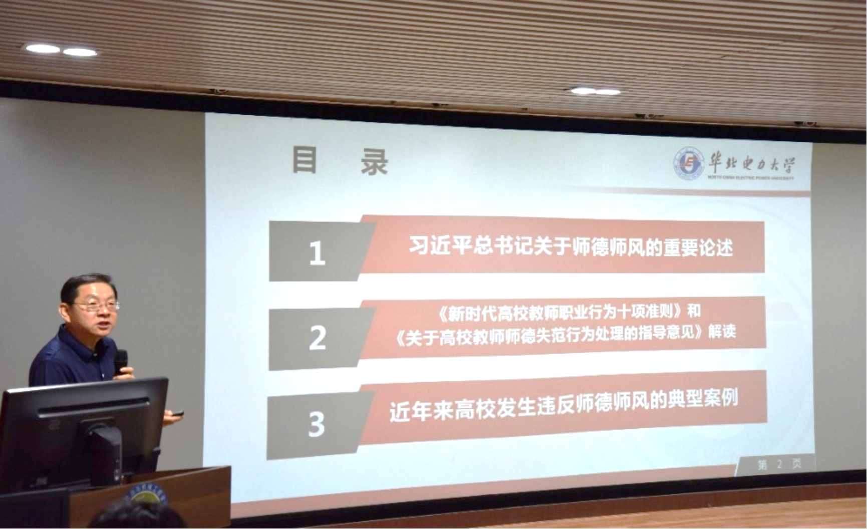 肖万里以“师德师风教育”为主题,为在场的青年教师们带来了一场深刻而富有启发性的专题报告。肖书记带领大家学习了习近平总书记关于师德师风的重要论述,深入解读了《新时代高校教师职业行为十项准则》和《关于高校教师师德失范行为处理的指导意见》,并为青年教师们树立了明确的职业行为准则,剖析了近年来高校中违反师德师风的典型案例。鼓励青年教师要积极学习先进典型,从他们身上汲取力量,同时也警示青年教师要时刻自省,严于律己,避免走上失德失范的道路。