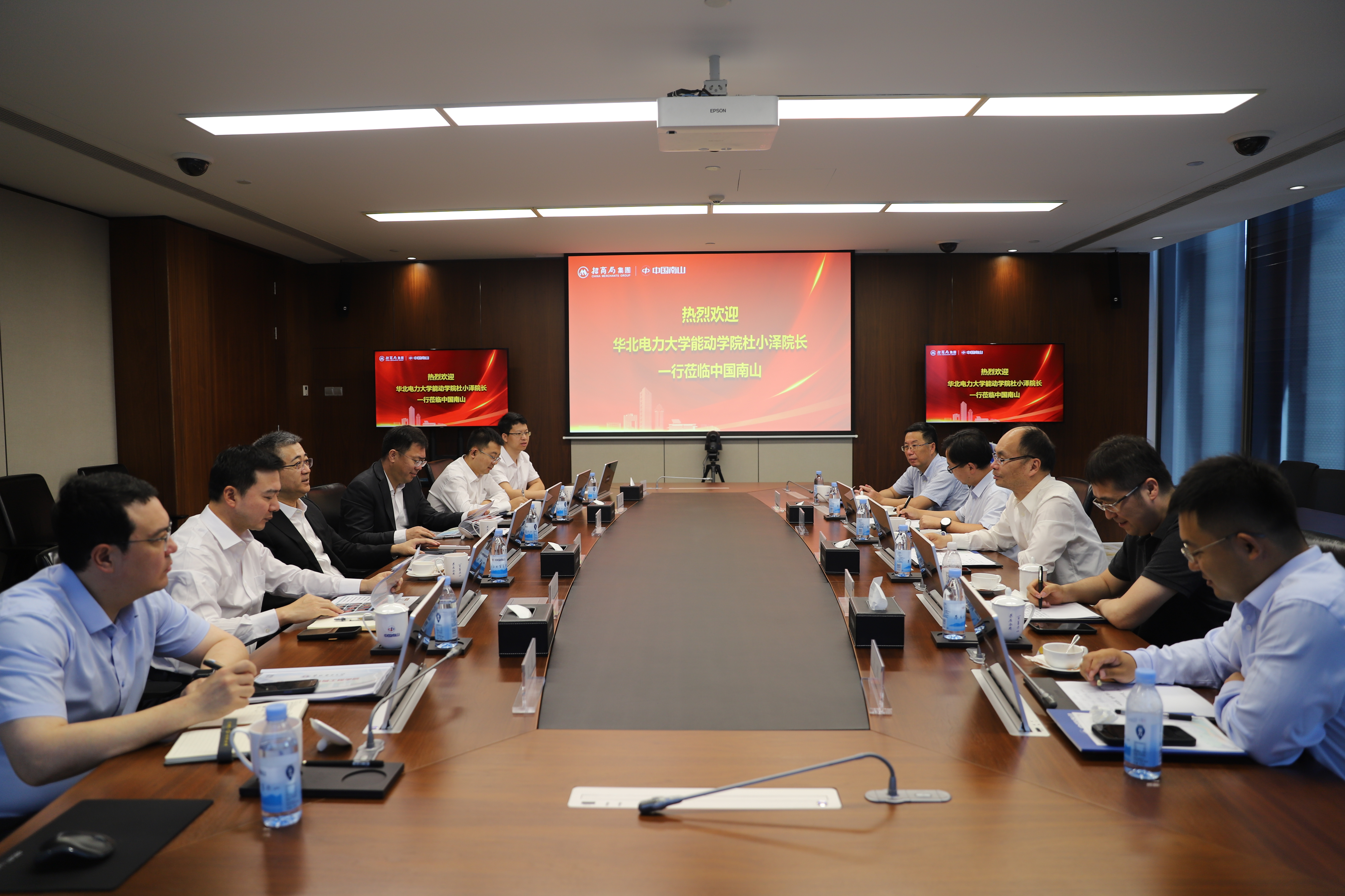 参观结束,双方在中国南山总部大厦举行座谈会,会上,李鸿卫首先对中国南山的历史发展情况、业务布局和发展规划进行了详细介绍。作为招商局集团的二级单位,中国南山继承和发扬了招商局“敢为天下先”的创新精神,在多个领域实现了跨越发展。此外,他表示,中国南山将充分发挥自身优势,聚焦新能源领域,打造具有核心竞争力的产业体系。中国南山作为招商局未来在新能源领域的主体单位之一,正在积极布局和拓展新能源业务,中国南山已初步形成涵盖风电、光伏、储能、氢能等多元化的业务组合,并在多个地区建立了示范项目。随后,南山控股总经理邱文鹤,中国南山战略发展部副总经理夏智勇,南山控股战略管理部/新能源发展部负责人侯建,核建融租总经理、中开新能源总经理张磊,中开新能源副总经理卢泰古等分别介绍了各自业务情况以及期待的合作业务方向。他们详细阐述了各自在新能源领域的布局、项目进展和未来规划,表达了与华北电力大学能动学院开展深度合作的强烈意愿。