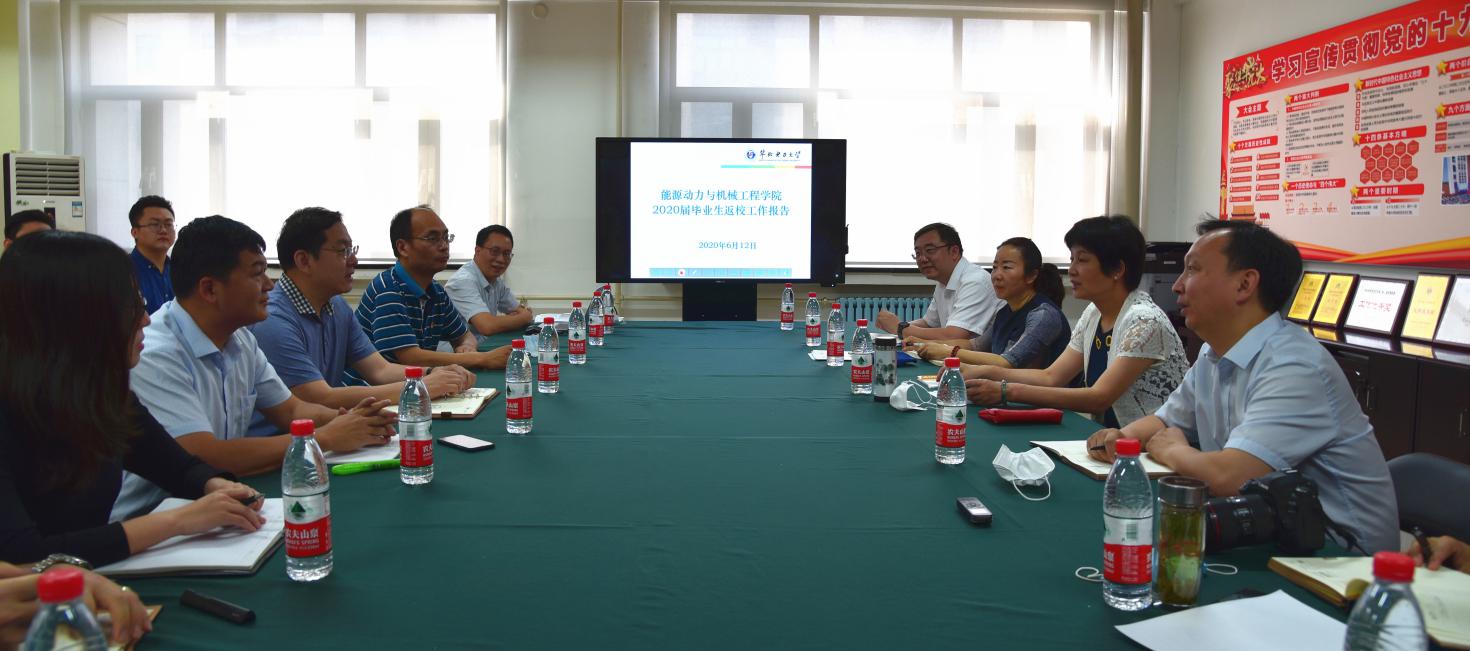 肖万里书记代表学院欢迎周坚书记及相关职能部门负责人一行到来。党委副书记李辉汇报了学院2020届毕业生返校工作推进情况,介绍了学院从成立工作组、统筹安排到精准员工数据、一对一跟进落实的具体举措和结果,展示了学院相关工作分工明确、稳步推进的良好态势。
